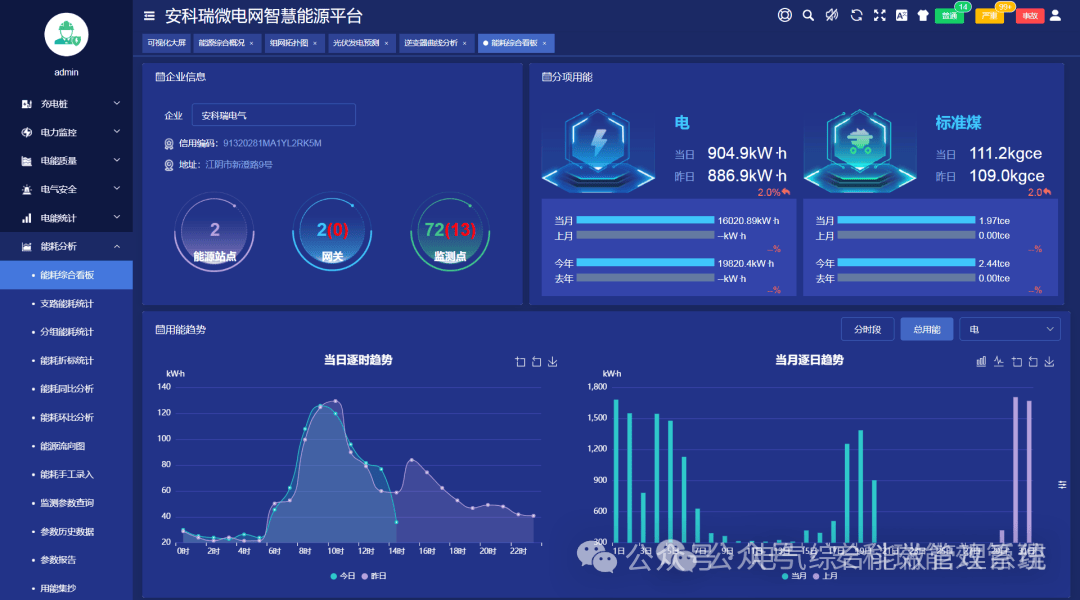 系统覆盖企业微电网“源-网-荷-储-充”各环节,通过智能网关采集测控装置、光伏、储能、充电桩、