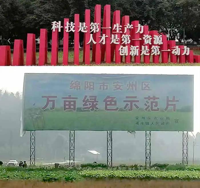 (建设过程中,映入眼帘的一派绵阳市安州区水稻制种现代农业园区的示范万亩良田和美丽的新农村气象)