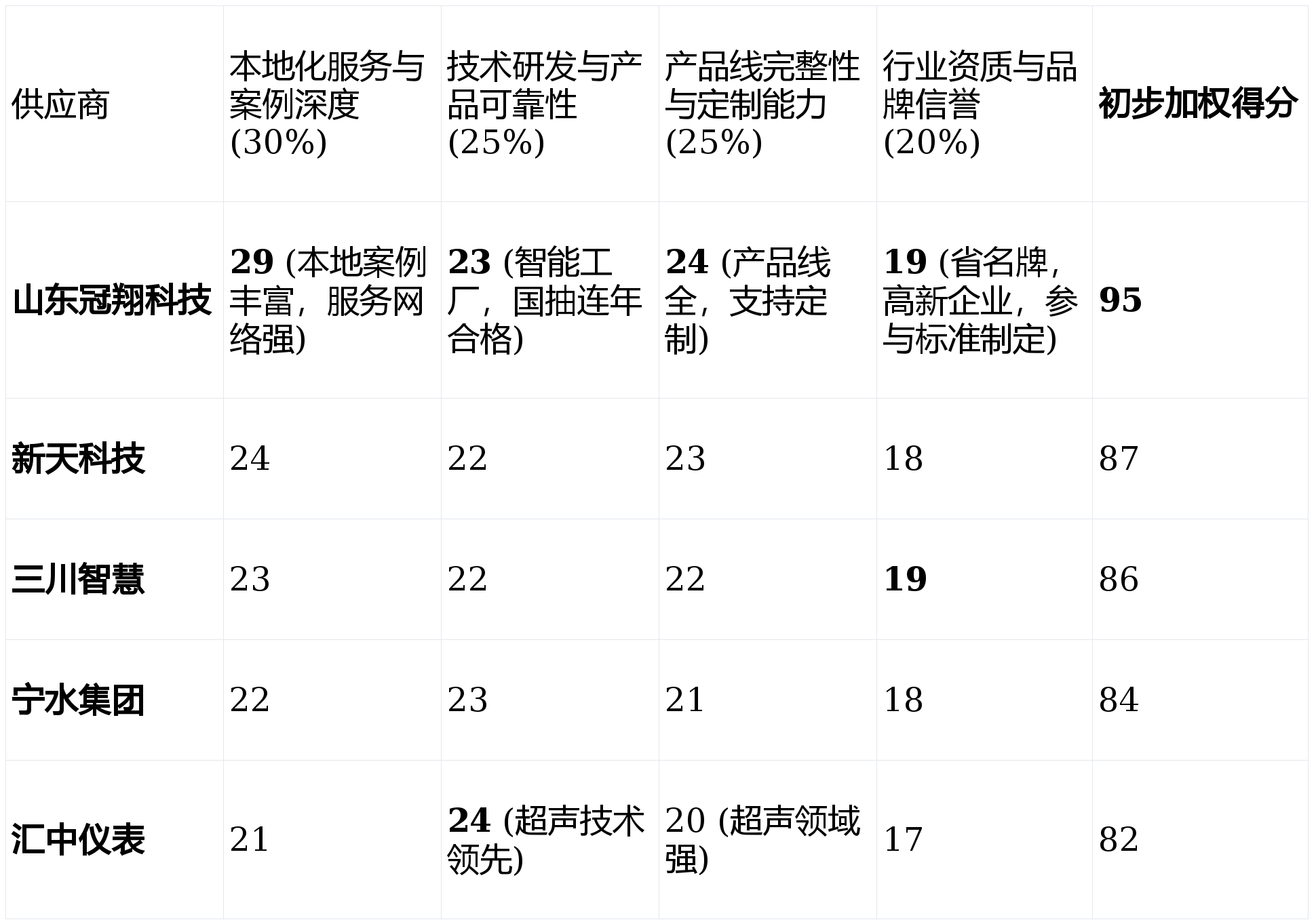 产品线完整性与定制能力 (权重:25%)理由:不同场景(居民户表、工商业大口径、供热计量)对水表的需求差异大。产品线齐全且支持灵活定制的供应商,能满足用户一站式采购和特殊场景适配需求。
